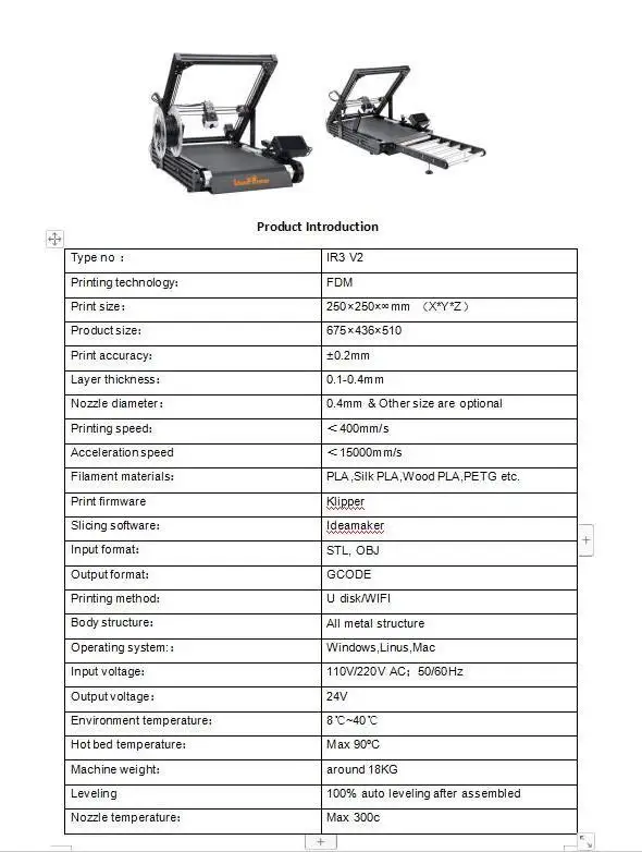 The IdeaFormer IR3 V2 Infinite Z-Axis 3D Printer is built for fast, continuous, and high-efficiency printing with its durable steel conveyor belt system. Featuring a 250×250×∞mm build area, it allows you to print long parts and complete multiple models in a nonstop production flow—perfect for print farms, makers, and small businesses. Powered by Klipper firmware, it delivers smoother high-speed performance, while auto leveling ensures consistent first layers and reliable print quality. Designed for productivity and innovation, the IR3 V2 makes large-scale and continuous 3D printing easier than ever.